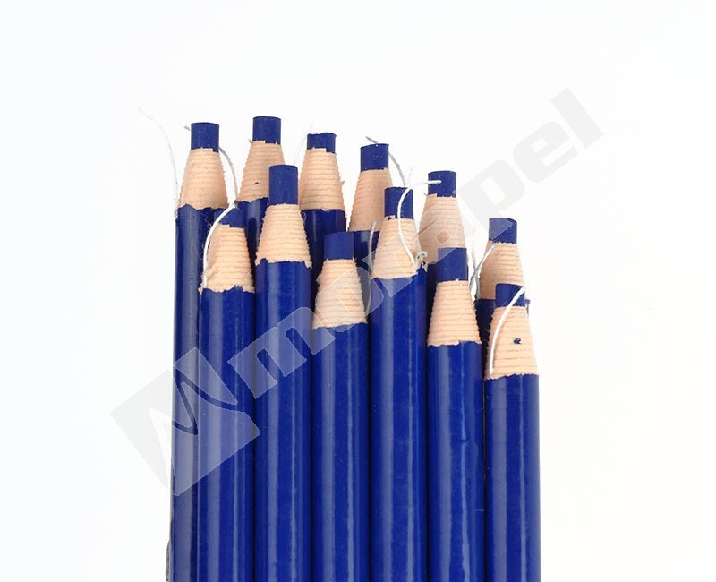 Dermatograf, kredka samoostrząca do zaznaczania skóry, kolor niebieski. Długość 16 cm. Kredka bardzo wyraźnie znaczy wszystkie rodzaje materiałów, jest bardzo miękka, temperowanie rysika następuje poprzez pociągnięcie nitki, która znajduje się wokół obudowy kredki. Produkt włoski.